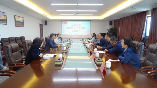 5月8日,高密市總工會(huì)黨組書(shū)記、常務(wù)副主席蘇釗一行9人赴集團(tuán)進(jìn)行實(shí)地考察,參觀學(xué)習(xí)非公企業(yè)產(chǎn)業(yè)工人隊(duì)伍建設(shè)改革等方面的先進(jìn)經(jīng)驗(yàn)做法。膠州市總工會(huì)黨組書(shū)記、常務(wù)副主席孫勇、辦公室主任張靜、生產(chǎn)部部長(zhǎng)周琴,集團(tuán)黨委副書(shū)記、監(jiān)事會(huì)主席張桂香、工會(huì)主席劉博等陪同考察。