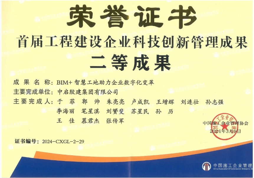 此次成功入選首屆工程建設企業(yè)科技創(chuàng)新管理成果優(yōu)秀案例集,充分體現(xiàn)了行業(yè)對中啟膠建集團科技創(chuàng)新管理水平的認可。未來,公司將繼續(xù)再接再厲,積極擴展多場景的創(chuàng)新管理研究,通過科技創(chuàng)新不斷推進管理的信息化升級,賦能企業(yè)實現(xiàn)高質(zhì)量發(fā)展。