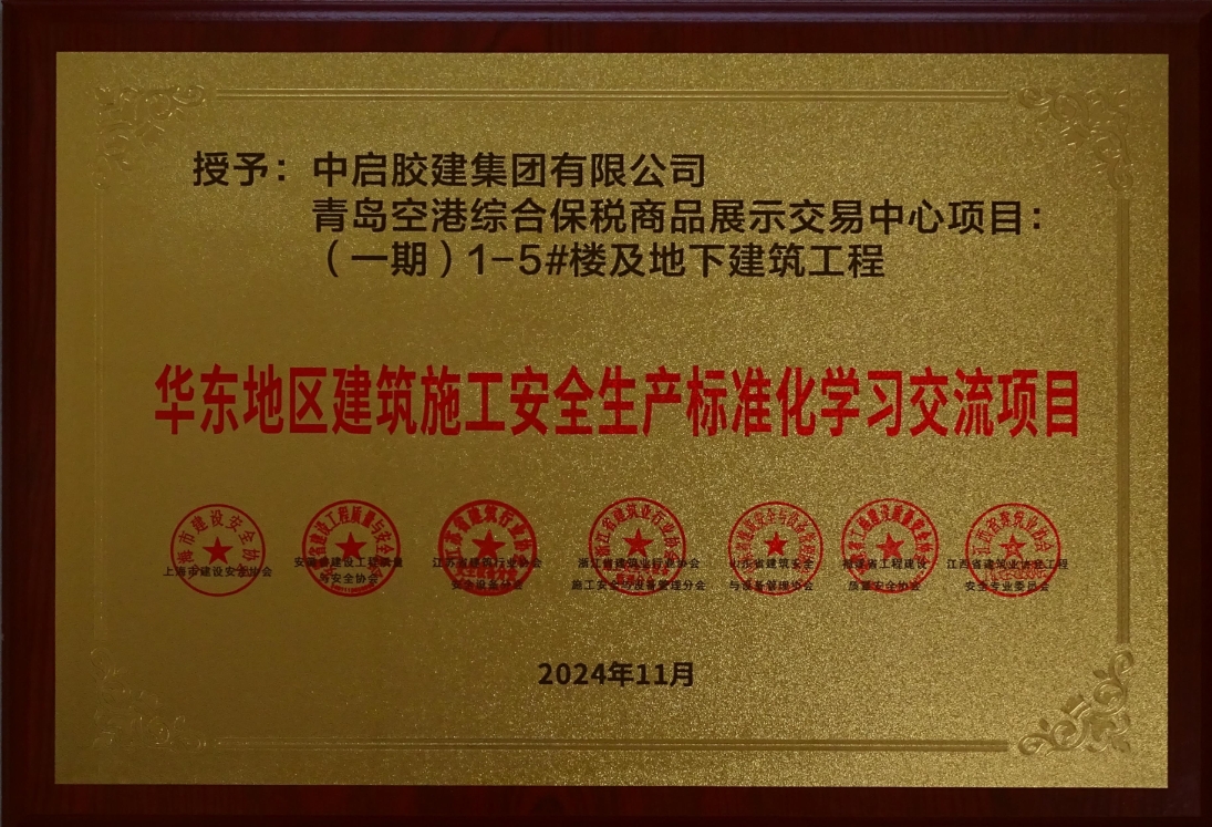 日前,華東地區(qū)建筑安全聯席會公布了2024年度“華東地區(qū)建筑施工安全生產標準化工地”名單,公司承建的青島空港綜合保稅商品展示交易中心項目(一期)1-5#樓及地下建筑工程,榮獲此項榮譽。這既是對公司安全生產標準化管理的認可,也是對今后持續(xù)嚴把安全關,爭創(chuàng)精品工程的鞭策。
