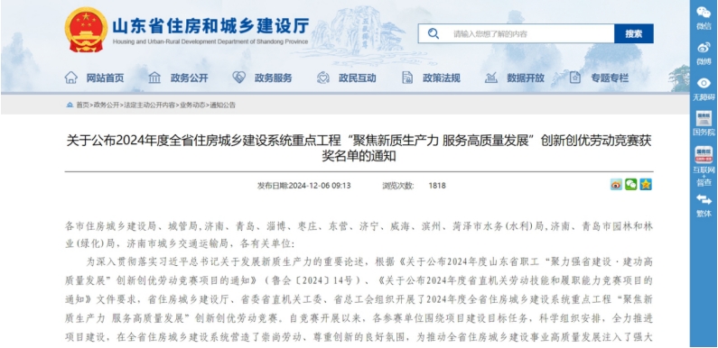12月6日,山東省住房和城鄉(xiāng)建設(shè)廳官網(wǎng)公布了2024年度全省住房城鄉(xiāng)建設(shè)系統(tǒng)重點工程“聚焦新質(zhì)生產(chǎn)力 服務高質(zhì)量發(fā)展”創(chuàng)新創(chuàng)優(yōu)勞動競賽獲獎名單,中啟膠建集團有限公司榮獲“優(yōu)勝集體”稱號,青島市市民健康中心二期市公共衛(wèi)生臨床中心項目部和青島空港綜合保稅商品展示交易中心項目(一期)1#-5#樓及地下建筑工程項目部被評為“優(yōu)勝項目部”稱號。