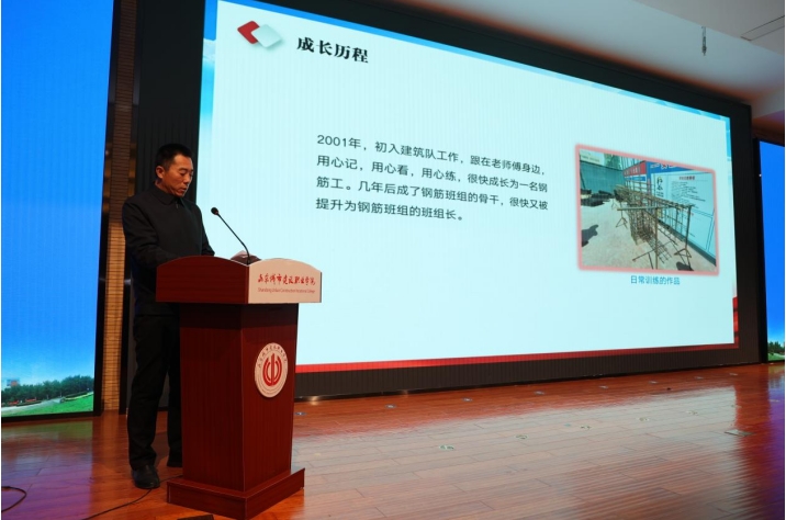 會上,張發(fā)以“匠心筑夢、技能成才”為主題進(jìn)行宣講,以個(gè)人成長經(jīng)歷為例,闡述了工匠精神的深刻內(nèi)涵。通過精彩的宣講活動,讓與會人員更加深切體會到“行業(yè)無分貴賤,匠心卻見高低;歷經(jīng)千錘百煉,方能匠心獨(dú)運(yùn)”?;顒蝇F(xiàn)場與會人員還一同觀看了我省住建代表團(tuán)參加“2024年全國住房城鄉(xiāng)建設(shè)行業(yè)職業(yè)技能大賽”風(fēng)采展示紀(jì)錄片,參觀了山東古建筑構(gòu)件博物館。