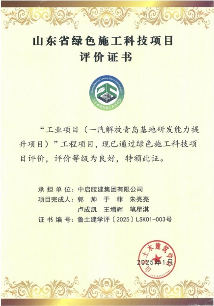 近日,山東土木建筑學會發(fā)布《關(guān)于公布通過驗收評價的山東省綠色施工科技項目的通知》,中啟膠建集團承建的工業(yè)項目(一汽解放青島基地研發(fā)能力提升項目)順利通過山東省綠色施工科技項目驗收評價。