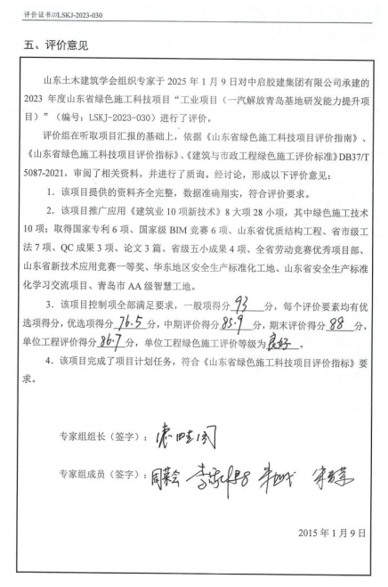 山東省綠色施工科技項目評價,是由山東土木建筑學會組織開展,旨在貫徹落實國家綠色發(fā)展理念,提高工程建設(shè)綠色施工水平,推進全生命周期綠色建造,推動實現(xiàn)碳達峰、碳中和,從而促進工程建設(shè)行業(yè)高質(zhì)量發(fā)展。通過專家評審,該項目單位工程評價取得86.7分的優(yōu)異成績,單位工程綠色施工評價等級為良好。