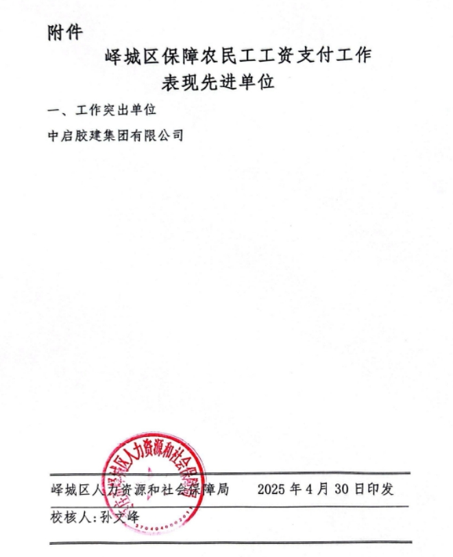 近年來,公司高度重視保障農(nóng)民工工資支付工作落實(shí)成效,先后多次迎接國務(wù)院及省市各級考核檢查,積極推動企業(yè)欠薪治理工作提質(zhì)增效,取得了各級主管部門的高度認(rèn)可與大力贊揚(yáng)。