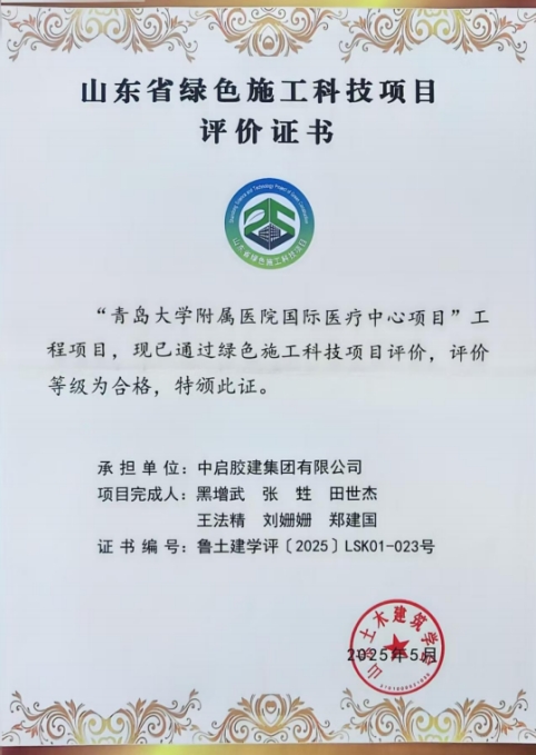 近日,由中啟膠建集團(tuán)建筑七公司負(fù)責(zé)承建的青島大學(xué)附屬醫(yī)院國(guó)際醫(yī)療中心項(xiàng)目順利通過(guò)山東省綠色施工科技項(xiàng)目評(píng)價(jià)驗(yàn)收。