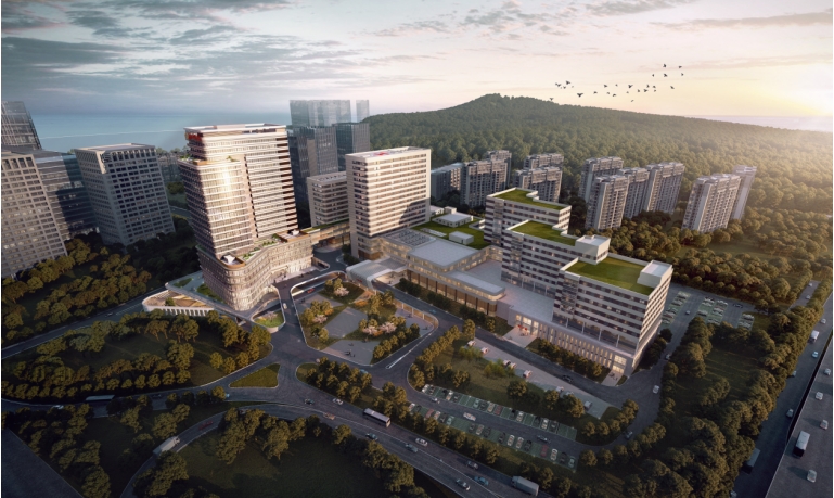 青島大學(xué)附屬醫(yī)院國(guó)際醫(yī)療中心,位于青島市嶗山區(qū)海爾路59號(hào),工程總用地面積為14.19萬(wàn)㎡,總建筑面積為6.63萬(wàn)㎡ ,其中地上建筑面積53215㎡,地下建筑面積13085 ㎡。地下3 層,地上23層,建筑高度98.55米。工程主樓為框架剪力墻結(jié)構(gòu),裙房為框架結(jié)構(gòu),結(jié)構(gòu)樁基礎(chǔ)。項(xiàng)目位于院區(qū)東側(cè),西側(cè)緊鄰門(mén)診病房綜合樓、綜合病房樓及門(mén)診醫(yī)技樓,東側(cè)緊鄰院區(qū)污水處理站,北側(cè)與擬建的院區(qū)中心廣場(chǎng)智能車庫(kù)毗鄰,建設(shè)用地范圍約5000 平方米。國(guó)際醫(yī)療中心規(guī)劃床位286張。主要功能為國(guó)際門(mén)診、醫(yī)技、體檢中心、預(yù)防保健、病房等。該項(xiàng)目于2021年立項(xiàng)山東省綠色施工科技項(xiàng)目,經(jīng)過(guò)三年的建設(shè),順利完成了各項(xiàng)綠色施工目標(biāo)達(dá)到較好的科技示范效果。