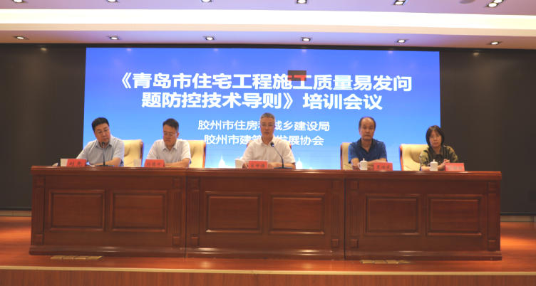 9月12日上午,膠州市住建局聯(lián)合膠州市建筑業(yè)發(fā)展協(xié)會在全國第48個“質(zhì)量月”活動開展之際,組織召開住宅工程施工質(zhì)量易發(fā)問題培訓(xùn)會。膠州市住建局黨組成員、副局長宋世謙,建筑工程質(zhì)量科科長劉德升,中啟膠建集團(tuán)總工程師黑增武,副總工程師劉姍姍以及全市施工企業(yè)質(zhì)量技術(shù)負(fù)責(zé)人、項(xiàng)目經(jīng)理、項(xiàng)目質(zhì)量技術(shù)負(fù)責(zé)人,監(jiān)理企業(yè)質(zhì)量技術(shù)負(fù)責(zé)人等180余人參加培訓(xùn)。會議由膠州市建筑業(yè)發(fā)展協(xié)會秘書長劉堯主持。