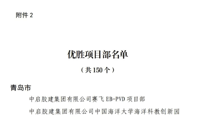 12月10日,山東省住房和城鄉(xiāng)建設(shè)廳官網(wǎng)公布了2025年度全省住房城鄉(xiāng)建設(shè)系統(tǒng)重點(diǎn)工程創(chuàng)新創(chuàng)優(yōu)勞動競賽獲獎名單,中啟膠建集團(tuán)有限公司榮獲“優(yōu)勝集體”稱號,賽飛 EB-PVD 項(xiàng)目部和中國海洋大學(xué)海洋科教創(chuàng)新園區(qū)(西海岸校區(qū))智慧海洋樓工程項(xiàng)目部被評為“優(yōu)勝項(xiàng)目部”稱號,華東公司孔祥濤和膠州公司張澤帥評為“優(yōu)勝個人”稱號。